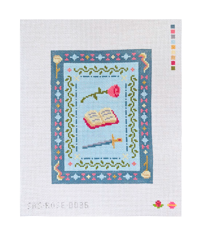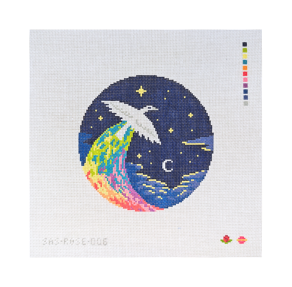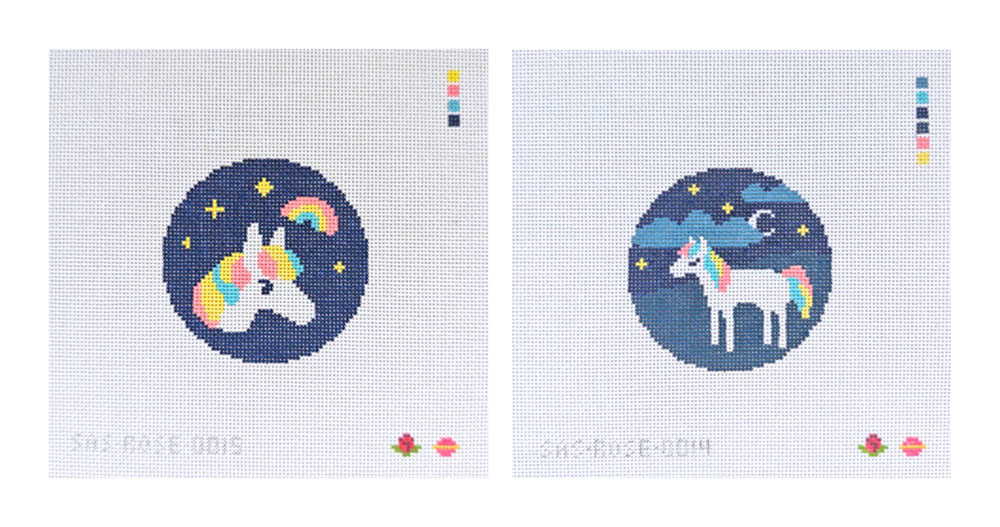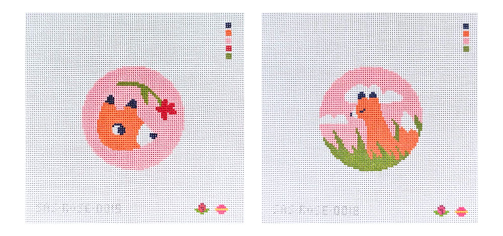 If there is a design or illustration of mine that isn't here which you'd like to paint/adapt into a needlepoint canvas yourself (for personal use only) instead of buying a pre-painted canvas, for most of my work I am happy to sell a virtual "ticket" for you to do this even if a chart is not officially available. You can send me a tip on ko-fi for $5-10 per design if you want to do this.